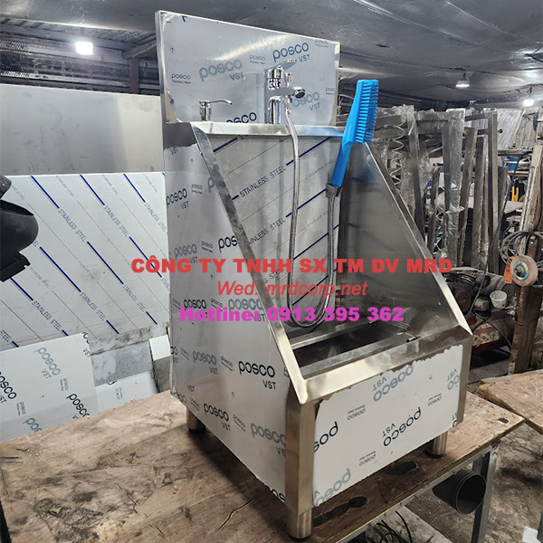Bồn rửa ủng inox phòng sạch được sử dụng để vệ sinh tay trước khi vào khu vực sản xuất . Bồn rửa tay inox được thiết kế gọn gàng, chắc chắn, dễ vệ sinh, Các mối hàn dược xử lý chốn oxi hóa, mặt tiền không thấy mối hàn, Được sản xuất gia công theo yêu cầu.