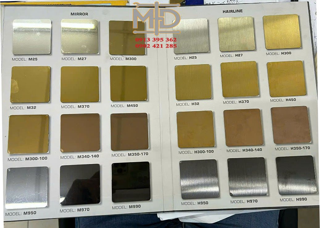 HÌNH BẢNG MÀU INOX XI MẠ PVD