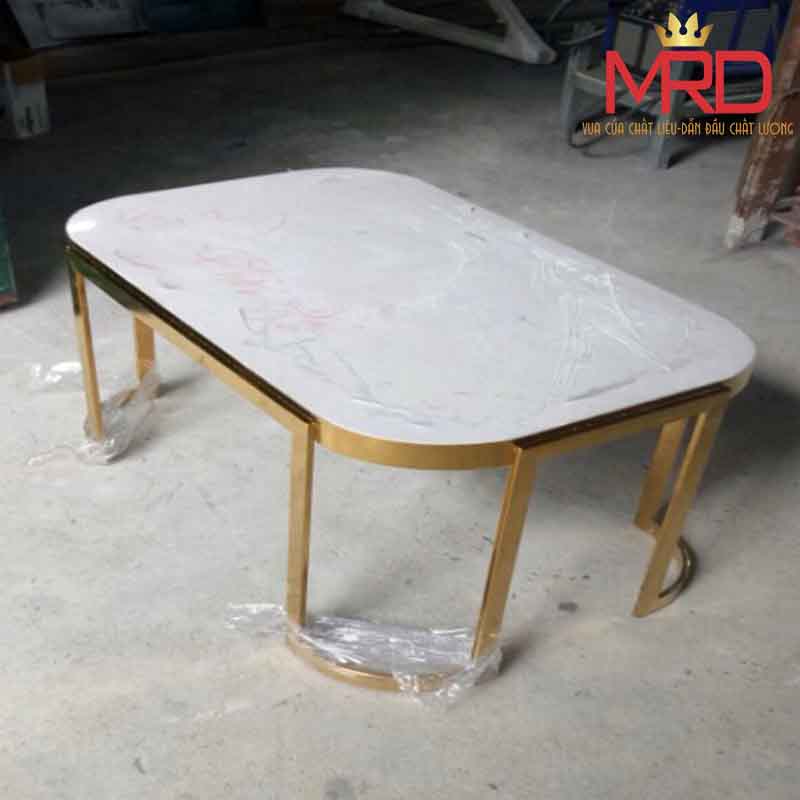 Bàn trà - Bàn Sofa Khung chân Inox mạ vàng mặt đá trắng
