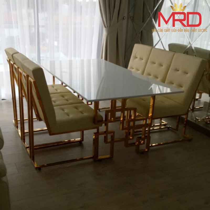 Bộ bàn ghế ăn khung chân inox mạ vàng