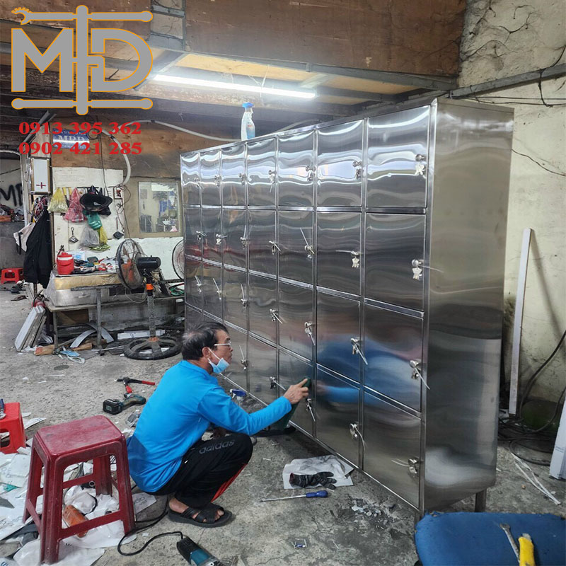Lắp Đặt và Kiểm Tra Chất Lượng: Sau khi gia công hoàn tất, các bộ phận của tủ locker inox sẽ được lắp ráp, kiểm tra chất lượng trước khi giao hàng. Đảm bảo các yếu tố như khóa, bản lề và độ bền của sản phẩm được kiểm tra kỹ lưỡng.