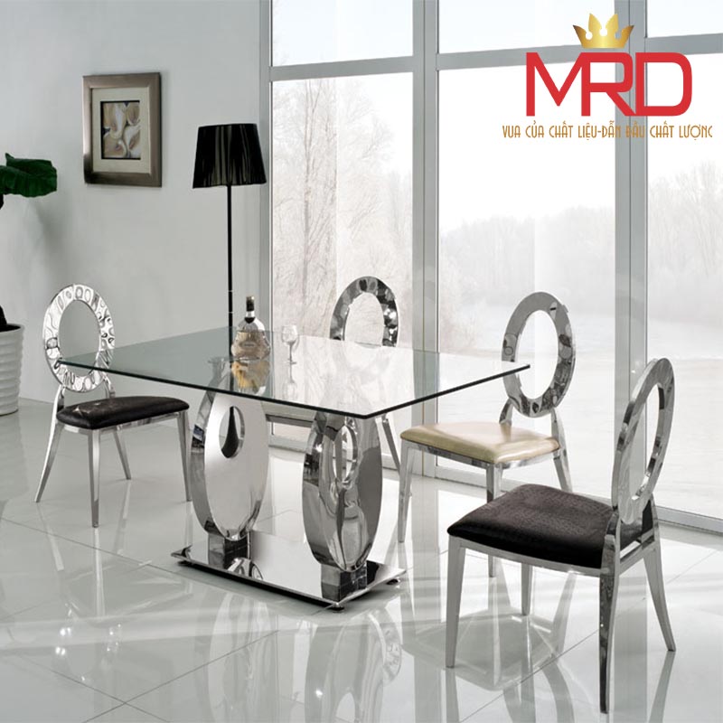 - Khung chân bàn ăn trắng bóng , sọc hay xi mạ tùy theo yêu cầu khách hàng