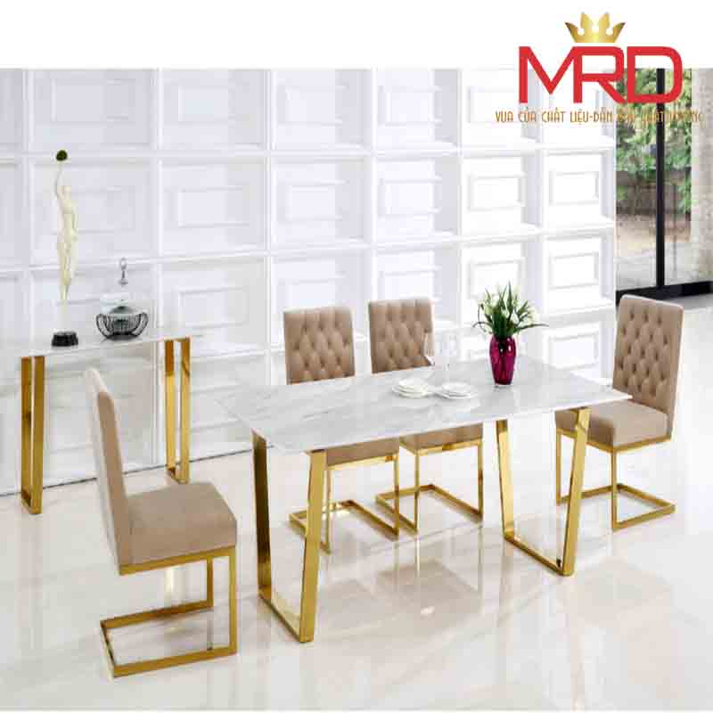- Khung chân bàn ăn trắng bóng , sọc hay xi mạ tùy theo yêu cầu khách hàng