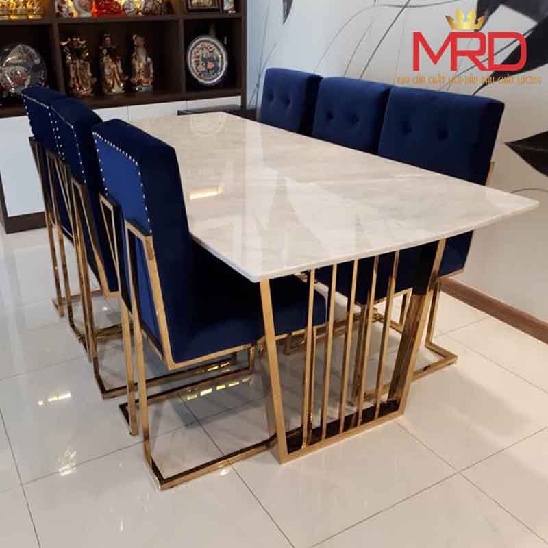 Bàn ăn khung chân bàn Inox mạ vàng