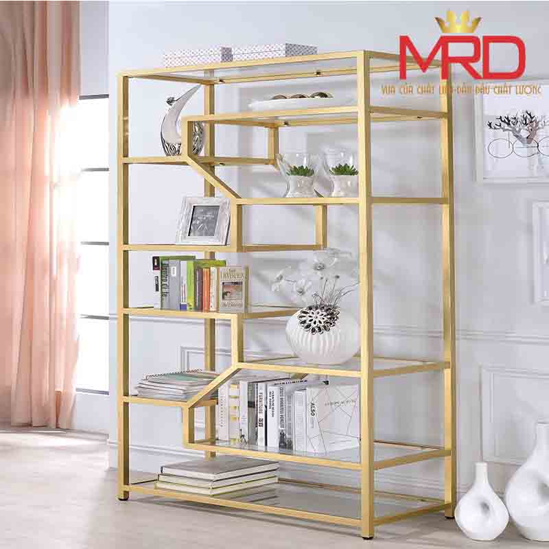 Kệ sách khung inox mạ vàng