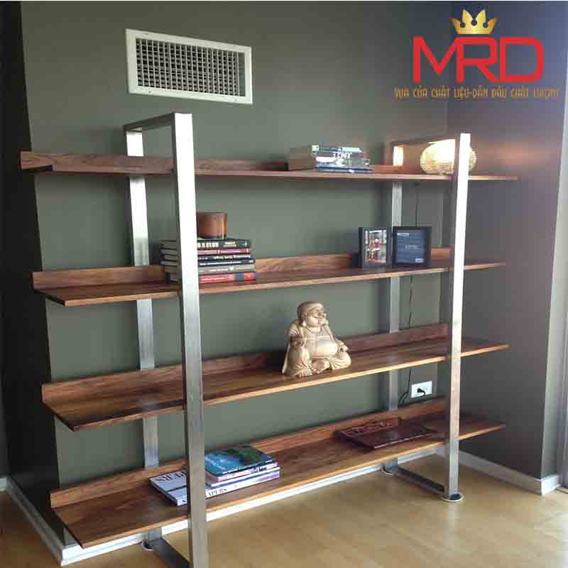 Kệ sách hay Kệ trang trí khung inox đợt gỗ