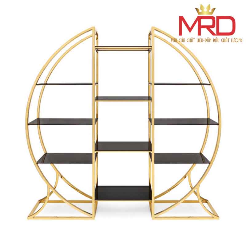Kệ sách- Kệ trang trí khung inox xi mạ vàng đợt kính
