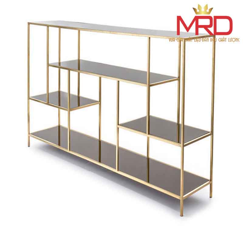 Kệ trang trí khung inox mạ vàng đợt kính