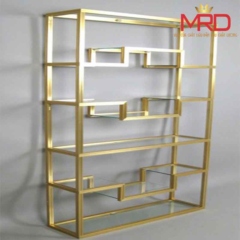 Kệ trang trí phòng khách khung inox mạ vàng