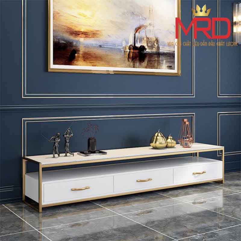 Kệ tivi khung chân inox theo phong cách hiện đại sang trọng là có sự kết hợp màu sắc và chất liệu với nhau để tạo hiệu ứng đẹp mắt, sang trọng như phong các nội thất trong các kiến trúc châu âu. Không những mang lại sự lấp lánh cho không gian, những kệ tivi như thế này còn rất hút mắt và đêm lại đẳng cấp khó có thể phủ nhận.