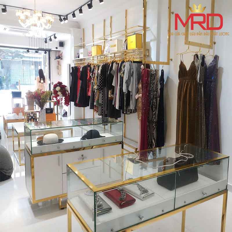 Thi công nội thất shop thời trang cao cấp - Inox 304 mạ vàng