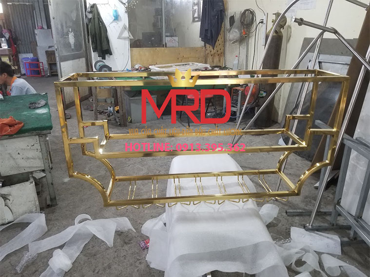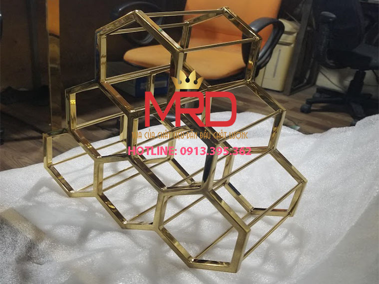 Kệ trưng bày rượu bằng inox 304 xi mạ pvd vàng gold