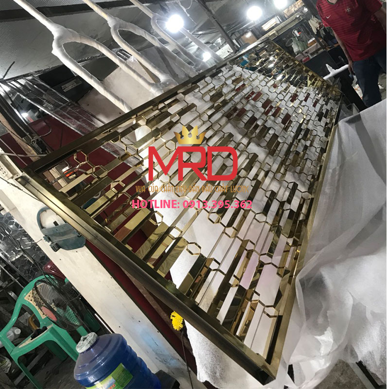 Vách ngăn inox là gì : Là loại vách ngăn trang trí được sản xuất từ chất liệu inox như inox hộp, inox ống, inox la, inox tấm gia công trên công nghệ hàn tig hay công nghệ cắt cnc , đảm bảo sự tinh tế, đường nét hoa văn chính xác, Sau đó xi mạ pvd cao cấp giúp tăng độ thẩm mỹ theo màu sắc yêu cầu.