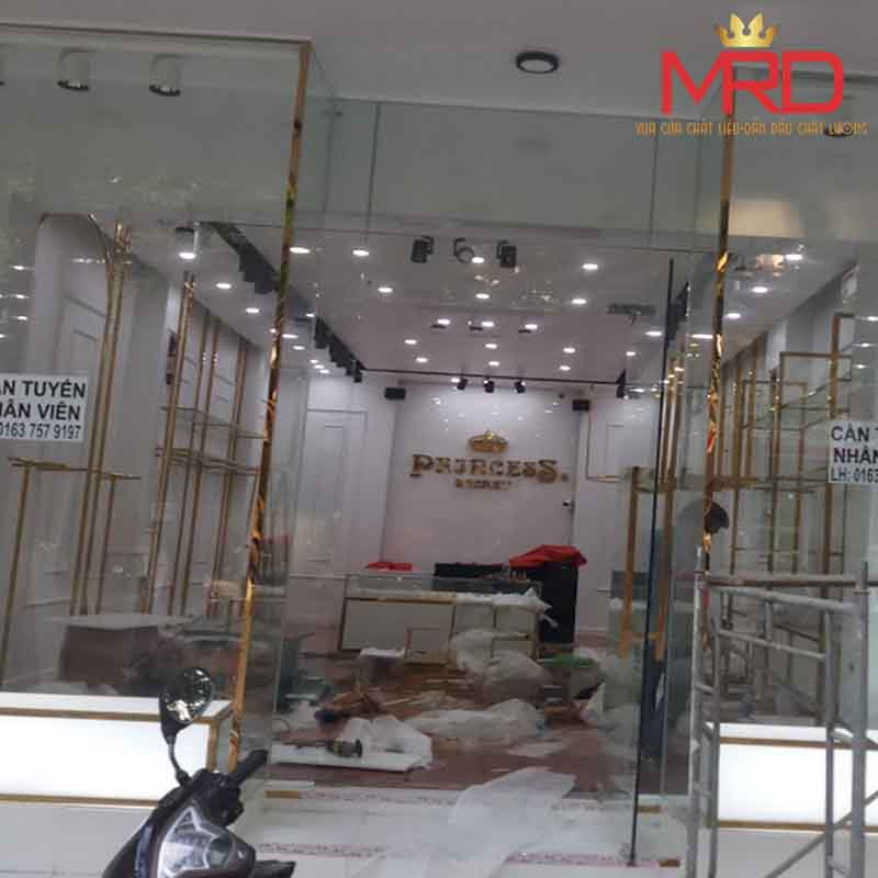 Thi công inox mạ vàng và hoàn thiện shop thời trang
